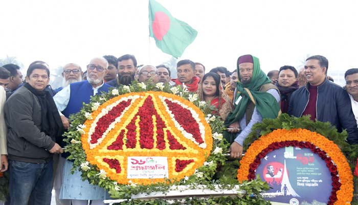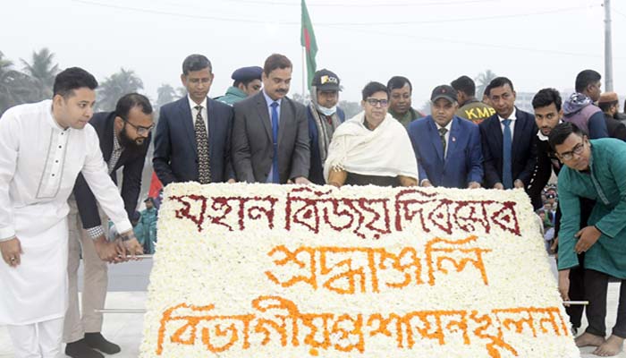 খুলনায় যথাযোগ্য মর্যাদায় আজ শনিবার মহান বিজয় দিবস-২০২৩ উদযাপিত হয়। এ উপলক্ষে সূর্যোদয়ের সাথে সাথে গল্লামারী শহিদ স্মৃতিসৌধে পুষ্পমাল্য অর্পণ করা হয়। প্রত্যুষে খুলনা মেট্রোপলিটন পুলিশ লাইনে ৩১বার তোপধ্বনির মধ্যদিয়ে দিবসের শুভ সূচনা করা হয়। সূর্যোদয়ের সাথে সাথে সরকারি, আধাসরকারি, স্বায়ত্তশাসিত এবং বেসরকারি ভবন ও প্রতিষ্ঠানসমূহে জাতীয় পতাকা উত্তোলন এবং শহরের প্রধান প্রধান সড়ক ও সড়ক দ্বীপসমূহ জাতীয় পতাকা দ্বারা সজ্জিত করা হয়।