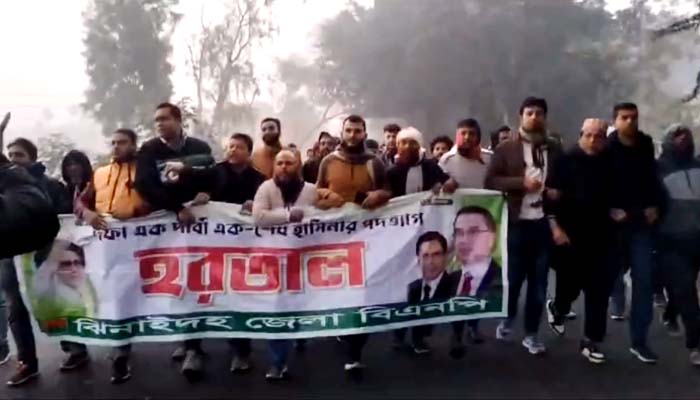 ঝিনাইদহে হরতাল সমর্থনে বি.এন.পির ঝটিকা মিছিল