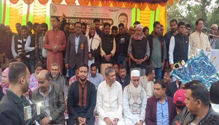 মাগুরা-১ আসনের আওয়ামী লীগের নৌকা প্রতীকে মনোনীত প্রার্থী বিশ্বসেরা ক্রিকেট অল রাউন্ডার সাকিব আল হাসান বলেছেন, মাননীয় প্রধানমন্ত্রী বাংলাদেশকে অনন্য উচ্চতায় নিয়ে গেছেন। বাংলাদেশের উন্নয়নের সে ধারাকে অব্যাহত রাখতে নৌকা প্রতীকের বিকল্প নেই। নৌকায় ভোট দিলে আমি জিতবে, মাননীয় প্রধানমন্ত্রী জিতবে, আওয়ামী জিতবে, বাংলাদেশ জিতবে। এটা আমার বাবার ইউনিয়ন, আপনাদের কাছে আমার দাবি বেশি। মঙ্গলবার বিকেলে মাগুরার শ্রীপুর উপজেলার সব্দালপুরস্থ সাকিবের দাদা বাড়ির স্কুল মাঠে ইউনিয়ন আওয়ামী লীগ আয়োজিত নির্বাচনী জনসভায় এ কথা বলেন।