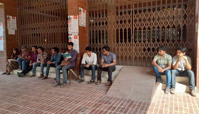 জাবিতে পাঁচ দফা দাবিতে প্রশাসনিক ভবন অবরোধ