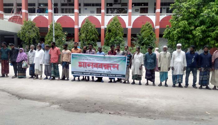 মানববন্ধনে ইজারা গ্রহীতা সাহেব আলী বলেন, প্রভাব খাটিয়ে এবং নানা কৌশলে ভূমিদস্যূরা এই জমির দখল নিতে চাইছে। এভাবে চলতে থাকলে ওই এলাকার সব সরকারি খাস জমি ভূমিদস্যূরা দখল করে নেবে। ভূমিদস্যূরা ইতিমধ্যেই তাদেরকে হয়রানি করতে বিভিন্ন মিথ্যা মামলা করে চলেছে। এই পর্যন্ত ৪টি মিথ্যা মামলা করেছে তারা যার মধ্যে ২টি মামলা ইজারা বাতিলের পর করা হয়েছে। এই ৭৩ শতক জমিতে তিনি সহ এলাকার অনেক নিম্নবিত্ত মানুষ মাছ চাষ করতেন। বর্তমানে তারা মাছ চাষ না করতে পেরে মানবেতর জীবনযাপন করছেন, অর্ধাহারে অনাহারে থাকছেন।