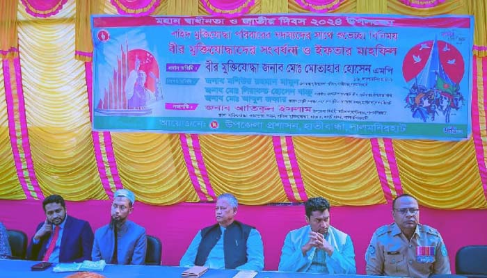 লালমনিরহাটের হাতীবান্ধায় শহীদ মুক্তিযোদ্ধা পরিবারের সদস্যদের সাথে শুভেচ্ছা বিনিময়, বীর মুক্তিযোদ্ধাদের সংবর্ধনা ও ইফতার মাহফিল অনুষ্ঠিত হয়েছে। মঙ্গলবার বিকালে হাতীবান্ধা উপজেলা মুক্তিযোদ্ধা কমপ্লেক্স ভবনে এই সংবর্ধনা ও ইফতার মাহফিল অনুষ্ঠিত হয়।