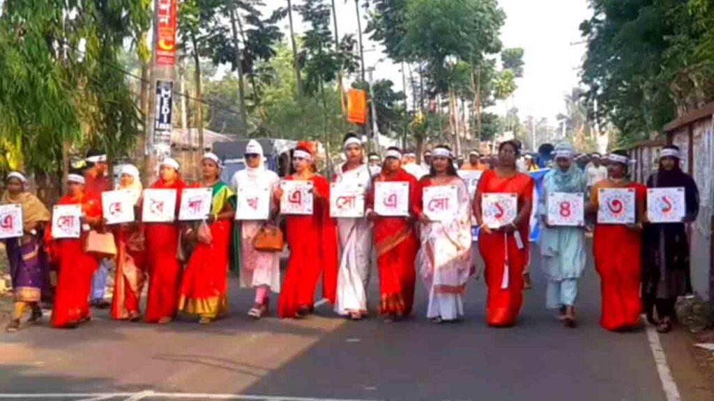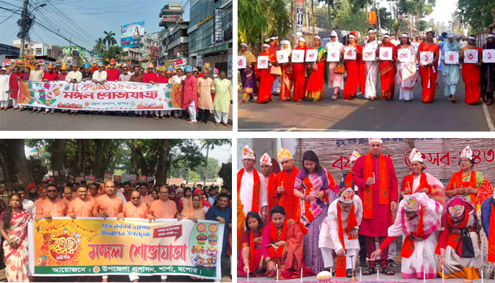 একইভাবে সাতক্ষীরার কালিগঞ্জ, শ্যামনগর, দেবহাটা, তালাসহ সব উপজেলার গ্রামে পাড়ায় অনুষ্ঠিত হয়েছে মঙ্গল শোভাযাত্রা।