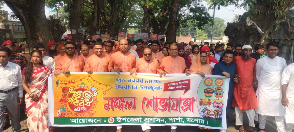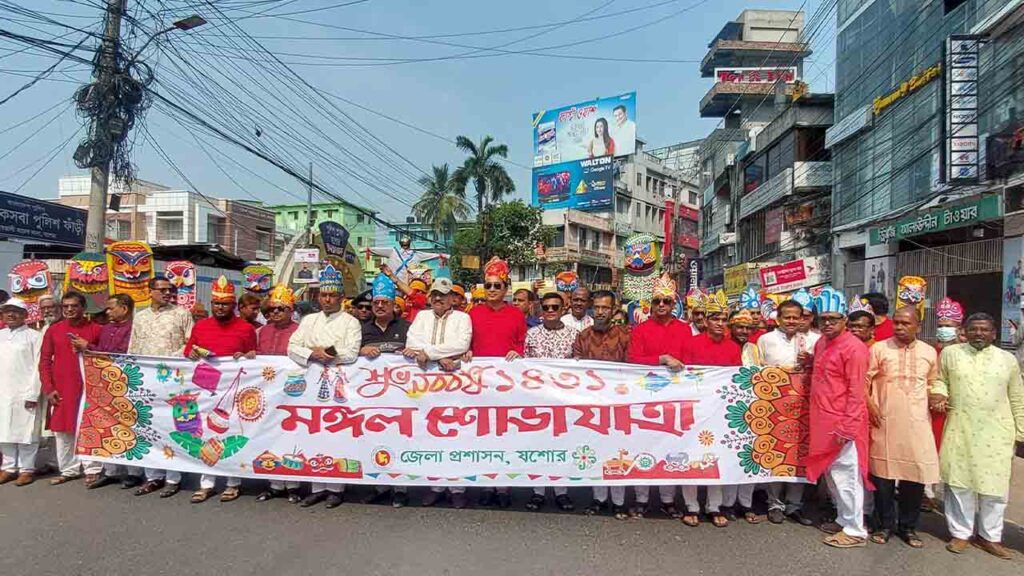 যশোরে বর্ণাঢ্য মঙ্গল শোভাযাত্রায় নববর্ষ বরণ করা হয়েছে। সকাল ৯টার দিকে শহরের টাউন হল ময়দানে মঙ্গল শোভাযাত্রার উদ্বোধন করেন জেলা প্রশাসক আবরাউল হাছান মজুমদার। এতে যশোরের বিভিন্ন সাংস্কৃতিক, শিক্ষাপ্রতিষ্ঠান ও সামাজিক সংগঠন অংশ নেয়। শোভাযাত্রা শহরের গুরুত্বপূর্ণ সড়ক প্রদক্ষিণ করে টাউন হল ময়দানে এসে শেষ হয়।