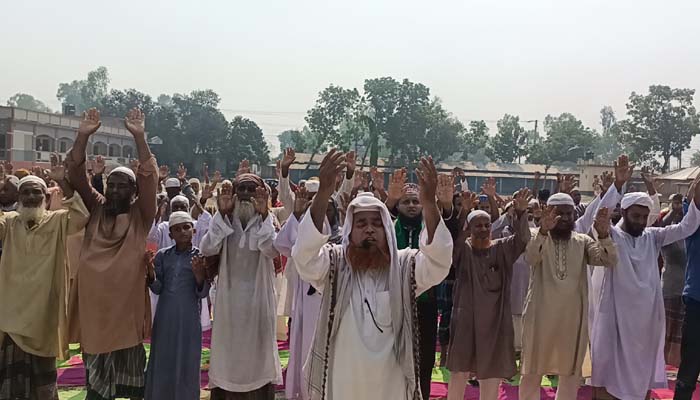 বগুড়ার শিবগঞ্জে বৃষ্টির জন্য অনুষ্ঠিত হলো সালাতে ইসতিসকার । স্থানীয় ধর্মপ্রাণ মুসল্লিদের আয়োজনে তীব্র দাবদাহ থেকে পরিত্রাণ পেতে সকাল সাড়ে আট টায় পৌর এলাকার শব্দলদিঘী উচ্চ বিদ্যালয় মাঠে খোলা আকাশের নিচে এ সালাত আদায় করা হয়।