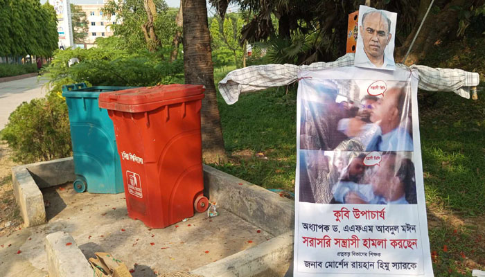 কুবিতে উপাচার্যের কুশপুত্তলিকা রাখলো শিক্ষক সমিতি