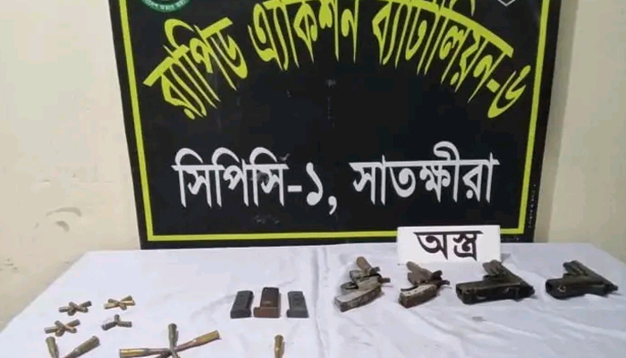 উক্ত সংবাদের ভিত্তিতে সেখানে অভিযান চালিয়ে শপিং ব্যাগের মধ্যে রক্ষিত পরিত্যক্ত অবস্থায় দুটি বিদেশি পিস্তল, দুটি দেশীয় ওয়ান সুটারগান, ২৯ রাউন্ড গুলি ও তিনটি ম্যাগাজিন জব্দ করা হয়। তিনি আরো জানান, জব্দকৃত অস্ত্র, গুলি ও ম্যাগাজিন সাতক্ষীরা সদর থানায় হস্তান্তর করা হয়েছে।
