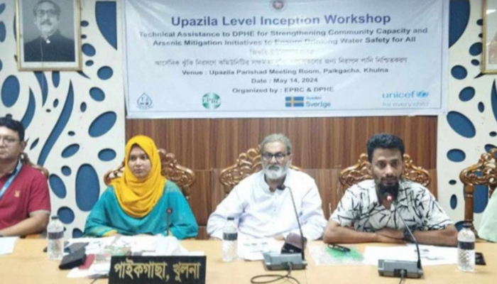 পাইকগাছায় এনজিও সংস্থা ইনভারোনমেন্ট এন্ড পপুলেশন রিচার্জ সেন্টার ইপিআরসি’র উদ্যোগে আর্সেনিক ঝুঁকি নিরসণে কমিউনিটির সক্ষমতা বৃদ্ধি এবং সকলের জন্য নিরাপদ পানি নিশ্চিতকরণ বিষয়ক উপজেলা পর্যায়ে অবহিত করণ সভা অনুষ্ঠিত হয়েছে।