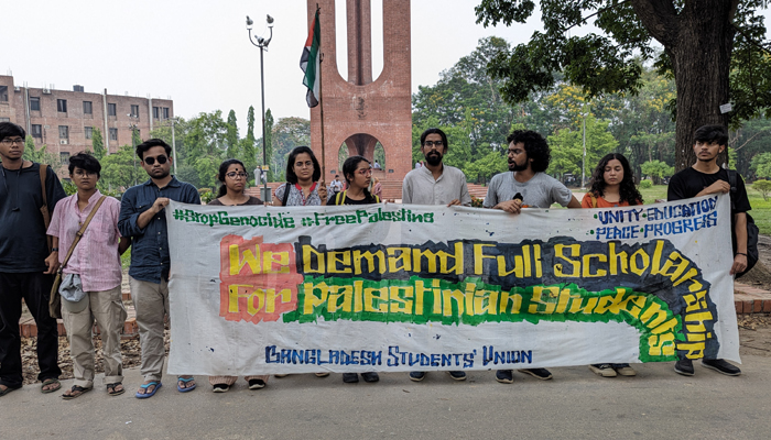 ফিলিস্তিনি শিক্ষার্থীদের পূর্ণাঙ্গ স্কলারশিপের দাবিতে জাবিতে মানববন্ধন