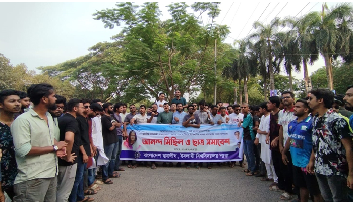ডিজিটাল বাংলাদেশের রূপকার, স্মার্ট বাংলাদেশের স্বপ্নদ্রষ্টা, মাননীয় প্রধানমন্ত্রী বঙ্গবন্ধুকন্যা দেশরত্ন শেখ হাসিনার ঐতিহাসিক স্বদেশ প্রত্যাবর্তন দিবস উপলক্ষ্যে আনন্দ মিছিল ও ছাত্র সমাবেশ করেছে ইসলামী বিশ্ববিদ্যালয় শাখা ছাত্রলীগ। ১৯৮১ সালের আজকের দিনে দীর্ঘ নির্বাসন জীবন শেষে বাংলার মাটিতে পা রাখেন প্রধানমন্ত্রী শেখ হাসিনা।