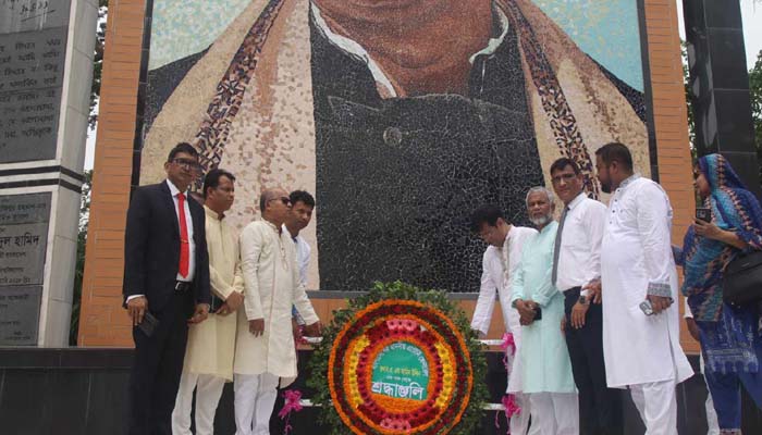 ইসলামী বিশ্ববিদ্যালয়ের (ইবি) মৃত্যুঞ্জয়ী মুজিব মুর্যালে শ্রদ্ধা নিবেদন করছেন এ্যটর্নি জেনারেল এ এম আমিন উদ্দিন। শনিবার (১৮ মে) বেলা সোয়া ১১ টায় প্রধান ফটক সংলগ্ন জাতির পিতা বঙ্গবন্ধু শেখ মুজিবুর রহমানের ভাষ্কর্য মৃত্যুঞ্জয়ী মুজিব মুর্যালে এ শ্রদ্ধা নিবেদন করা হয়।