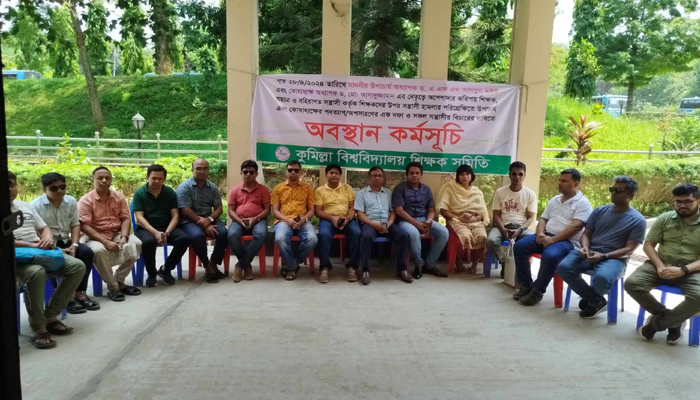 কুমিল্লা বিশ্ববিদ্যালয়ের (কুবি) উপাচার্য অধ্যাপক ড. এএফএম আবদুল মঈন ও কোষাধ্যক্ষ অধ্যাপক ড.মো: আসাদুজ্জামানের নেতৃত্বে অছাত্র ও বহিরাগত কর্তৃক শিক্ষকদের উপর হামলার প্রতিবাদে উভয়ের পদত্যাগ ও অপসারণের এক দফা দাবিতে দ্বাদশ দিনের মতো অবস্থান কর্মসূচি পালন করেছে শিক্ষক সমিতি।