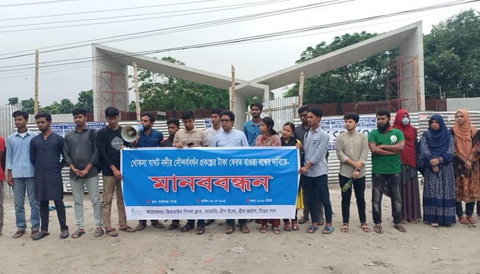 খোকসা ঘাঘট নদীর সৌন্দর্যবর্ধনের প্রকল্পের টাকা ফেরত যাওয়া বন্ধের দাবিতে মানববন্ধন করেছে বেগম রোকেয়া বিশ্ববিদ্যালয়ের (বেরোবি)