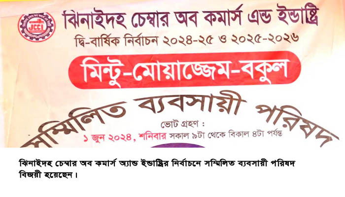 ঝিনাইদহ চেম্বার অব কমার্স অ্যান্ড ইন্ডাষ্ট্রির নির্বাচন শান্তিপূর্ণ ভাবে অনুষ্ঠিত হয়েছে। প্রতিষ্ঠার ৩৯ বছর পর আজ শনিবার ( ১ জুন) এ নির্বাচন অনুষ্ঠিত হয়। সকাল ৯ টা থেকে বিরতিহীন ভাবে বিকাল ৪টা পর্যন্ত ভোট গ্রহন করা হয়। দ্বি-বর্ষিক এ নির্বাচনে সম্মিলিত ব্যবসায়ী পরিষদ ও ব্যবসায়ী ঐক্য পরিষদ নামে দুটি প্যানেল প্রতিদ্বন্দিতা করে।