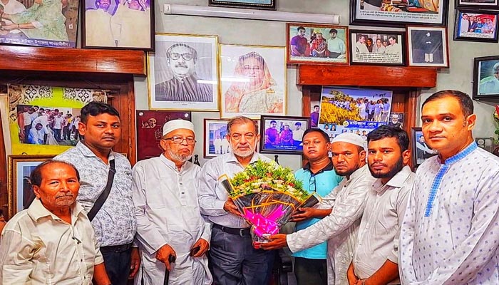এবিএম ফজলে করিম চৌধুরীকে ফুলেল শুভেচ্ছা জানাচ্ছেন রাউজান প্রেস ক্লাবের নেতৃবৃন্দ।