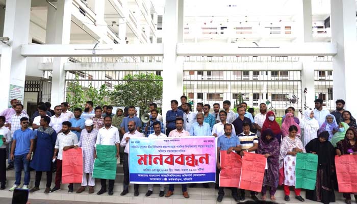 সর্বজনীন পেনশন স্কিম বাতিলের দাবিতে যবিপ্রবি শিক্ষক-কর্মকর্তাদের ফের মানববন্ধন