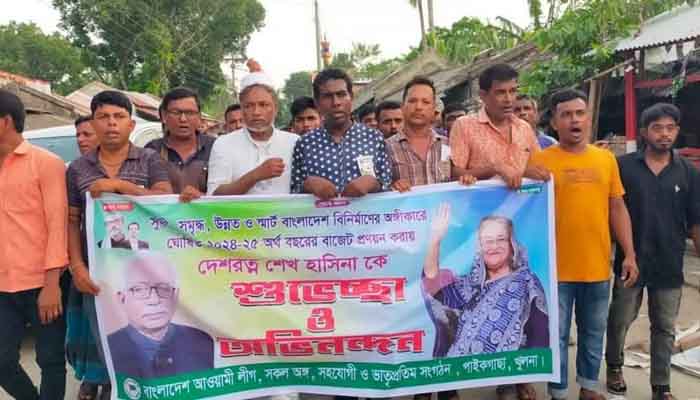 পাইকগাছার আগড়ঘাটা বাজারে ২০২৪-২৫ অর্থ বছরের বাজেট কে স্বাগত জানিয়ে আনন্দ মিছিল অনুষ্ঠিত হয়েছে।