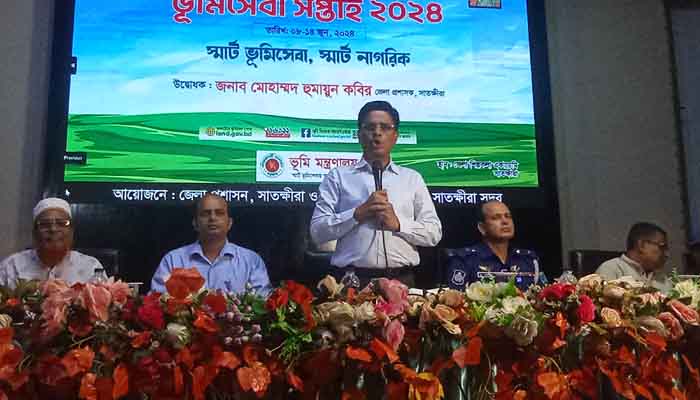 শনিবার (০৮ জুন) সকাল ১০টায় সাতক্ষীরা জেলা প্রশাসনের আয়োজনে সাতক্ষীরা জেলা শিল্পকলা একাডেমি মিলয়তনে প্রধান অতিথি হিসেবে উপস্থিত থেকে বেলুন ও ফেস্টুন উড়িয়ে ভূমিসেবা সপ্তাহ’র উদ্বোধন করেন জেলা প্রশাসক মোহাম্মদ হুমায়ুন কবির। পরে জেলা শিল্পকলা একাডেমি মিলনায়তনে এক আলোচনা সভা অনুষ্ঠিত হয়।