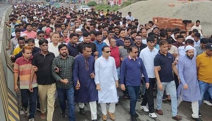 মিছিলে সাভার উপজেলা আওয়ামী লীগের সাধারণ সম্পাদক, উপজেলা পরিষদ চেয়ারম্যান মঞ্জুরুল আলম রাজীব, পৌর উপজেলা আওয়ামী লীগের সভাপতি ও পৌর মেয়র হাজি আব্দুল গণি, ঢাকা জেলা আওয়ামী লীগের যুগ্ম সাধারণ সম্বপাদক ফখরুল আলম সমর, আশুলিয়া থানা আওয়ামী লীগের সভাপতি ফারুক হাসান তুহিন, সাভার উপজেলা আওয়ামী লীগের যুগ্ম সাধারণ সম্পাদক লিয়াকত হোসেন, পৌরসভার ওয়ার্ড কাউন্সিলর নূরে আলম সিদ্দিকী নিউটন, ঢাকা জেলা উত্তর স্বেচ্ছাসেবক লীগের সাধারণ সম্পাদক সায়েম মোল্যা, সাভার থানা যুবলীগের সাধারণ সম্পাদক নাসির উদ্দিন, ঢাকা জেলা উত্তর ছাত্রলীগের সাবেক যুগ্ম সাধারণ সম্পাদক সাইদুল ইসলাম, পৌর স্বেচ্ছাসেবক লীগের সভাপতি রতন সাহা, পৌর কৃষক লীগের আয়নাল হক গেদু, সাভার সদর ইউনিয়ন আওয়ামী লীগের সাধারণ সম্পাদক মাজহারুল ইসলাম রুবেল, বিভিন্ন ইউনিয়ন পরিষদের চেয়ারম্যানসহ বিপুল সংখ্যক নেতাকর্মী অংশ নেয়।