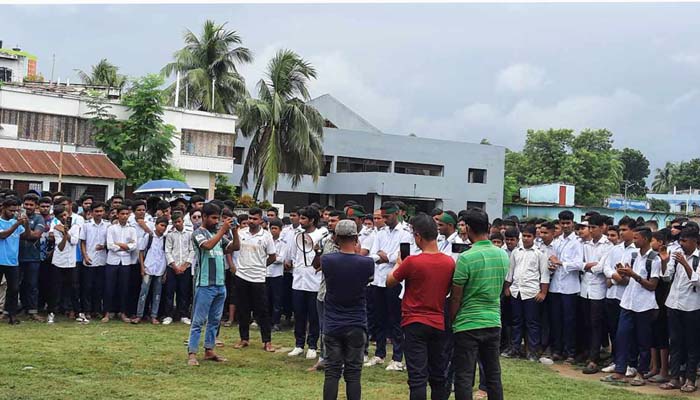 রোববার বেলা ১১ টায় ওই বিদ্যালয়ের সম্মূখে দাবীসমুহ পাঠ করেন প্রাক্তন ছাত্র ও বাংলাদেশ জাতীয় ফুটবল দলের খেলোয়াড় আলমগীর হোসেন। এরপর ছাত্ররা বিদ্যালয়ের সহকারী প্রধান শিক্ষকের হাতে স্বারকলিপি প্রদান করেন। এ সময় শিক্ষকদের পক্ষে বক্তব্য রাখেন, সহকারী প্রধান শিক্ষক মাও. রুহুল আমিন ও আজিবর রহমান।