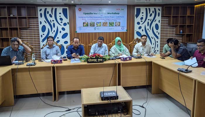 পাইকগাছায় জলবায়ু প্রভাব মোকাবিলায় কৃষকদের জীবনমান উন্নয়ণ বিষয়ক কর্মশালা অনুষ্ঠিত হয়েছে। মঙ্গলবার সকাল ১১ টায় উপজেলা পরিষদ মিলনায়তনে সেচ প্রকল্প কর্তৃক আয়োজিত ও উপজেলা কৃষি সম্প্রসারণ অধিদপ্তরের সহযোগিতায় অনুষ্ঠিত কর্মশালায় সভাপতিত্ব করেন প্রোজেক্ট ডিরেক্টর বি সি আর এল ড. মোহাম্মদ লোকমান হোসেন মজুমদার। প্রধান অতিথি ছিলেন,উপ-পরিচালক খুলনা কৃষিবিদ কাজী জাহাঙ্গীর হোসেন। স্বাগত বক্তব্য রাখেন, বাংলাদেশ কৃষি বিশ্ববিদ্যালয়ের অধ্যাপক ড. মো. নাসির উদ্দীন। কর্মশালায় প্রধান বক্তা ছিলেন,কৃষি বিশ্ববিদ্যালয়ের অধ্যাপক রোমিজ উদ্দীন।