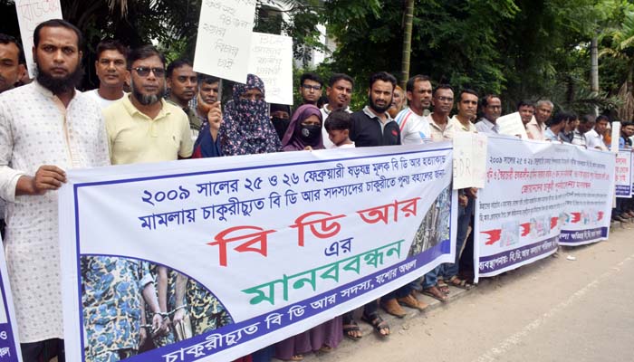 তারা বলেন, ২০০৯ সালের ২৫ ও ২৬ ফেব্রুয়ারি ষড়যন্ত্রমূলকভাবে বিডিআর হত্যাকান্ড মামলায় অবৈধ বিচারের মাধ্যমে যে সকল নিরীহ সদস্যদের চাকরি খাওয়া হয়েছে সকলের চাকরি ফেরত দিতে হবে। মানববন্ধন থেকে বলা হয় এদিন দিনাজপুরেও একই কর্মসূচি পালন হচ্ছে। খুলনা বিভাগের ১০ জেলায় পাঁচ শতাধিক তৎকালীন বিডিআর সদস্য চাকরি হারিয়ে বর্তমানে পথে পথে ঘুরছেন।