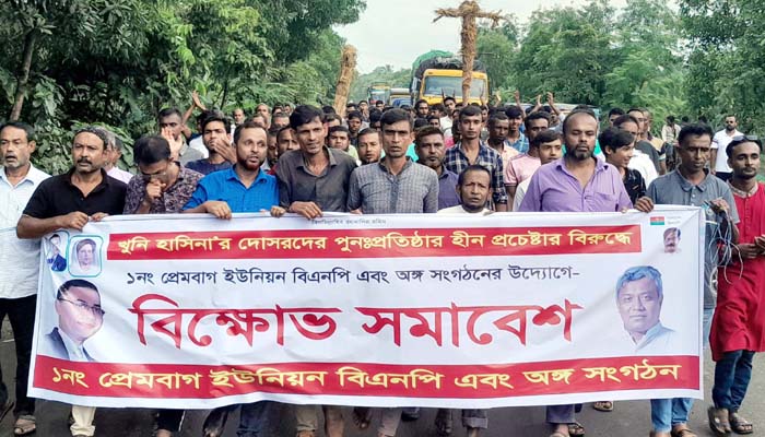 অভয়নগরে খুনি হাসিনা’র দোসরদের পুনঃপ্রতিষ্ঠার হীন প্রচেষ্টার বিরুদ্ধে বিক্ষোভ মিছিল ও সমাবেশ অনুষ্ঠিত হয়েছে। গতকাল শনিবার উপজেলার প্রেমবাগ ইউনিয়নের প্রেমবাগগেট এলাকায় ইউনিয়ন বিএনপি এবং অঙ্গ সহোযোগী সংগঠনের উদ্যোগে এ বিক্ষোভ সমাবেশ অনুষ্ঠিত হয়। সমাবেশ শেষে বিশাল একটি বিক্ষোভ মিছিল যশোর—খুলনা মহাসড়ক প্রদক্ষিণ করে।