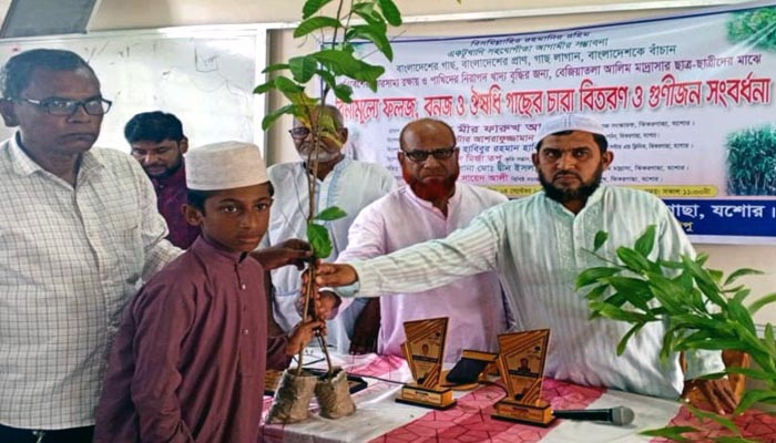 ‘একটুখানি সহযোগিতা আগামীর সম্ভাবনাময় বাংলাদেশের গাছ, বাংলাদেশের প্রাণ, গাছ লাগান, বাংলাদেশকে বাঁচান’ এই স্লোগানকে সামনে রেখে ঝিকরগাছায় বিনামূল্যে ফলজ, বনজ, ঔষধির সাড়ে ৬শ গাছের চারা বিতরণ ও গুণীজন সংবর্ধনা প্রদান করা হয়েছে।