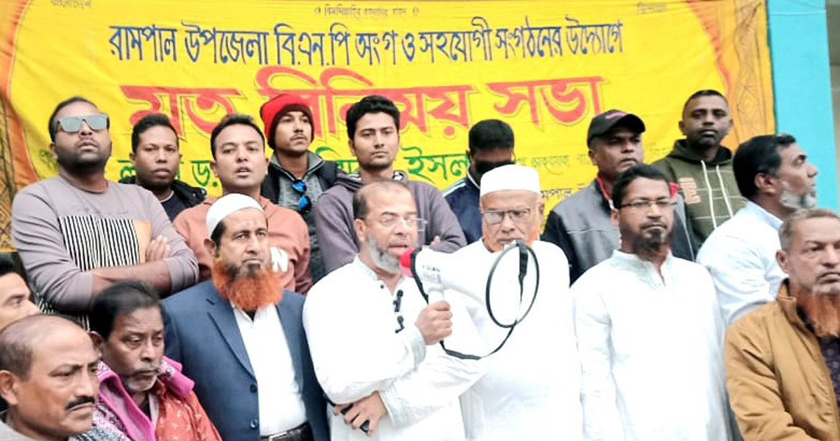 শুক্রবার (২৯ নভেম্বর) বিকেলে রামপাল উপজেলা বিএনপি ও অঙ্গ সহযোগী সংগঠন কর্তৃক আয়োজিত মতবিনিময় সভায় বড়দিয়া হাজ্বী আরিফ (রঃ) মাদ্রাসা মাঠে প্রধান অতিথির বক্তব্যে এসব কথা বলেন বিএনপি নেতা লাইন ডক্টর শেখ ফরিদুল ইসলাম।