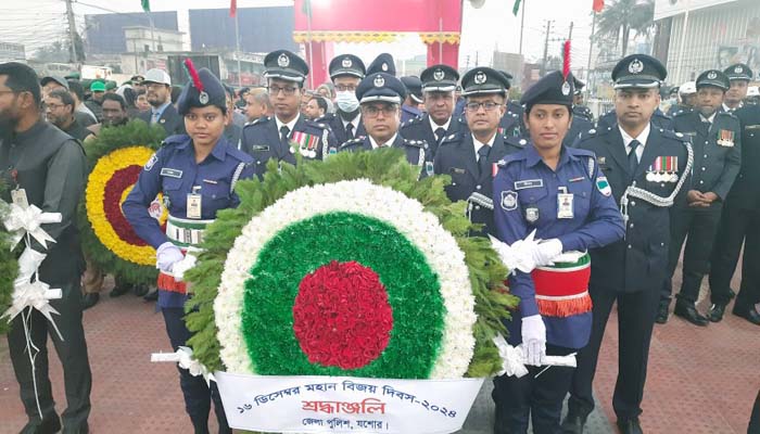 এদিন, সকালে প্রথমেই বিজয় স্মৃতিস্তম্ভে বীর শহীদদের প্রতি ফুলেল শ্রদ্ধা জানান যশোরের জেলা প্রশাসক আজাহারুল ইসলামের নেতৃত্বে জেলা প্রশাসন, পুলিশ সুপার জিয়াউদ্দীন আহমেদের নেতৃত্বে পুলিশ প্রশাসন। এরপর যশোর জেলা বিএনপি, সদর উপজেলা বিএনপি, নগর বিএনপি, জেলা মহিলা দল, জেলা যুবদল, স্বেচ্ছাসেবক দল, শ্রমিক দল, ছাত্রদল, মৎস্যজীবী দল, জেলা ইসলামী আন্দোলন, পৌরসভা, প্রেসক্লাব যশোর, যশোর সাংবাদিক ইউনিয়ন, সাংবাদিক ইউনিয়ন যশোর, স্থানীয় ও জাতীয় পত্রিকা, যশোর সংবাদপত্র হকার্স ইউনিয়ন, জাতীয় সমাজতান্ত্রিক দল (জেএসডি), যশোর জেনারেল হাসপাতাল, বিমানবন্দর, পানি উন্নয়ন বোর্ড, স্বাস্থ্য প্রকৌশল অধিদপ্তর, মৎস্য অধিদপ্তর, জেলা সেটেলমেন্ট অফিস, পল্লী বিদ্যুৎ সমিতি, বিআরটিএ, বিএসটিআই, জেলা পোস্ট অফিস, বিটিসিএল, পরিসংখ্যান অফিস, বিটিআরসি, ওজিএসবি, ব্যুরো বাংলাদেশ জোনাল অফিস, কৃষি বিপণন অধিদপ্তর, বাংলাদেশ ডিপ্লোমা মেডিকেল অ্যাসোসিয়েশন, প্রতিষ্ঠান পরিদর্শক অধিদপ্তর, তথ্য ও যোগাযোগ প্রযুক্তি অধিদপ্তর, পিটিআই, অগ্রণী ব্যাংক, জনতা ব্যাংক, প্রবাসী কল্যাণ ব্যাংক, বাংলাদেশ ডেভেলপমেন্ট ব্যাংক, রেডক্রিসেন্ট সোসাইটি, ইনস্টিটিউট অব ডিপ্লোমা ইঞ্জিনিয়ার্স, ডক্টরস ওয়েলফেয়ার সোসাইটি, ডিস্ট্রিক্ট একাউন্টস এন্ড ফিনান্স অফিস, আরডিআরএস রিজিওনাল অফিস, ওজোপাডিকো, প্রাণীসম্পদ গবেষণা ইনস্টিটিউট, যশোর চেম্বার অব কমার্স এন্ড ইন্ডাস্ট্রিজ, যশোর উইমেন চেম্বার অব কমার্স এন্ড ইন্ডষ্ট্রিজ।