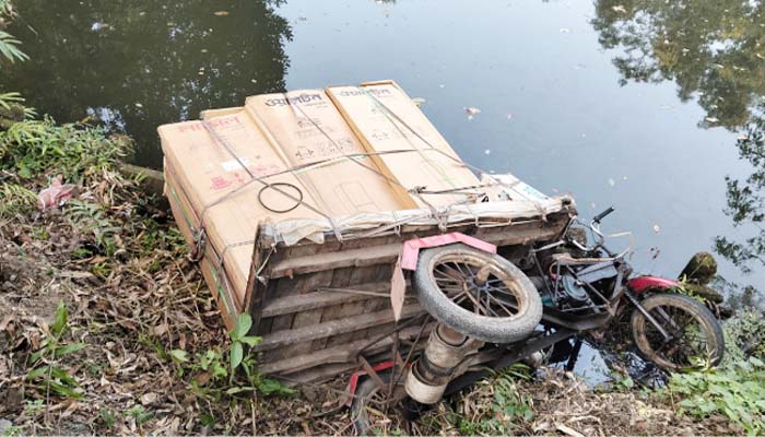 আশাশুনি উপজেলার বুধহাটায় দ্রুতগামী বাসকে ক্রসিং করতে গিয়ে ফ্রিজ বহনকারী ইঞ্জিন ভ্যান খাদে পড়েছে। সোমবার দুপুর ২.৪৫ টার দিকে এ ঘটনা ঘটে।