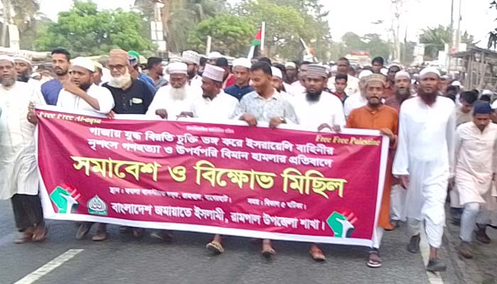 বাগেরহাটের রামপালে ফিলিস্তিনে দখলদার ইসরাইলের বর্বর হামলা, নির্যাতন ও বিনা অপরাধে ছোট্ট ছোট্ট মাসুম বাচ্চাদের হত্যার প্রতিবাদ ও ইসরায়েলি সব ধরণের পণ্য বর্জনের দাবিতে বিক্ষোভ মিছিল ও প্রতিবাদ সমাবেশ অনুষ্ঠিত হয়েছে।