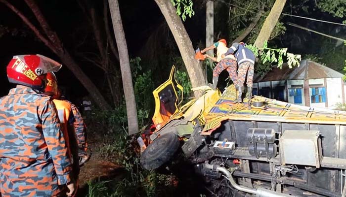 জানা যায়, খুলনা থেকে ঢাকা অভিমুখে যাওয়া তরমুজবোঝাই ট্রাকটি নিয়ন্ত্রণ হারিয়ে রাস্তার পাশের একটি গাছের সঙ্গে সজোরে ধাক্কা খায়। সংঘর্ষের পর ট্রাকটি গাছের সঙ্গে আটকে যায় এবং চালক ও হেলপার দুজনেই গাড়ির ভেতরে আটকে পড়েন। খবর পেয়ে মধুখালী ফায়ার সার্ভিস, মাগুরা ফায়ার সার্ভিস ও করিমপুর হাইওয়ে থানার পুলিশ ঘটনাস্থলে ছুটে আসে।