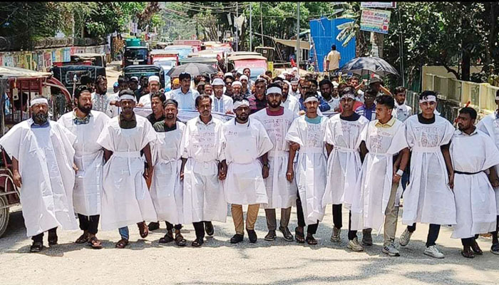 ভয়াল ২৯ এপ্রিলের কর্মসূচির অংশ হিসেবে কক্সবাজার শহরে কাফনের কাপড় পরে অবস্থান কর্মসূচি থেকে টেকসাই বেড়িবাঁধ নির্মাণের দাবি জানিয়েছেন কুতুবদিয়া উপজেলার বাসিন্দারা। এ সময় কুতুবদিয়া-মগনামা ঘাটে ফেরি চলাচলের দাবিও জানান তারা।