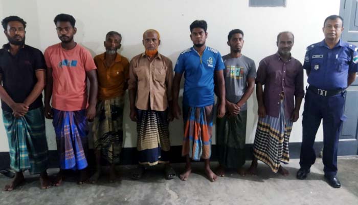 আটককৃতরা হলেন, উপজেলার মাকাপুর গ্রামের মুজিবুর রহমানের ছেলে মেহের আলী (৫৫), তরিকুল ইসলামের ছেলে নূর নবী (২৮), মধু হোসেনের ছেলে আবু তালেব (২৮), মৃত আব্দুল কাদেরের ছেলে মহিদুল ইসলাম (৫০), ইরাদ আলীর ছেলে ঈসরাফিল (২৭), আব্দুল আলী (৫১) ও তার ছেলে লাল্টু (২৬)।