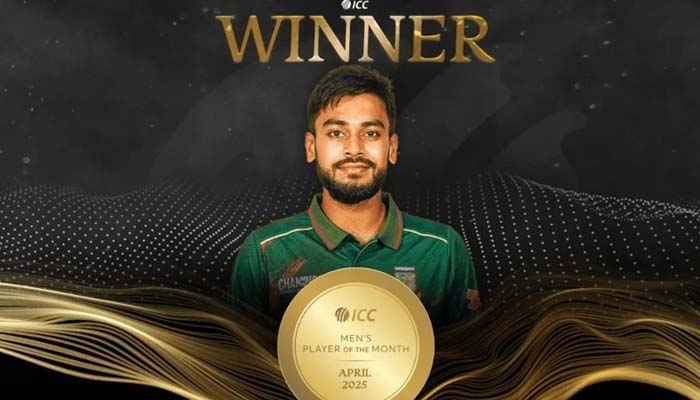 তিনি আরও বলেন, ‘এটা আমাকে আমার পথচলার শুরু মনে করিয়ে দেয়, যখন ২০১৬ সালে অনূর্ধ্ব-১৯ বিশ্বকাপে টুর্নামেন্ট সেরা হয়েছিলাম। এই পুরস্কারও তেমনই স্পেশাল। এটি আমাকে আরও ভালো খেলতে এবং বিশ্বমঞ্চে বাংলাদেশের জন্য নিয়মিত অবদান রাখতে অনুপ্রাণিত করবে।’