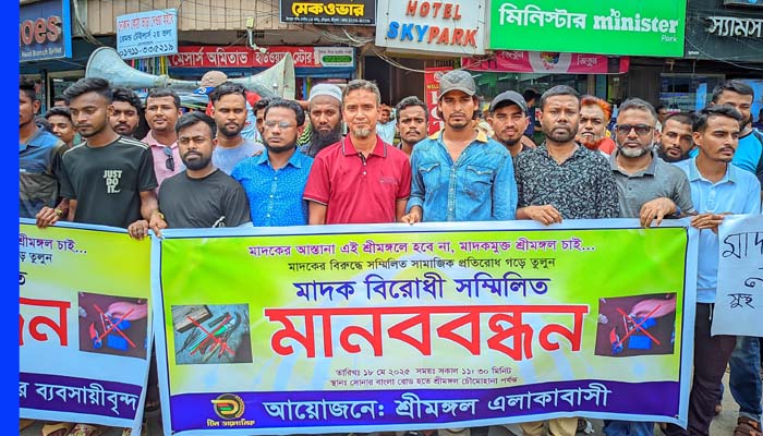 মৌলভীবাজারের শ্রীমঙ্গলে সব ধরণের মাদক-ইয়াবা এবং পতিতার আস্তানা উচ্ছেদসহ মাদক কেনাবেচায় জড়িতদের দ্রæত গ্রেফতার করে শাস্তির দাবিতে রবিবার দুপুরে শ্রীমঙ্গল চৌমুহনা চত্বরের সর্বস্তরের জনতার উদ্যোগে মাদকবিরোধী মানববন্ধন ও প্রতিবাদ সমাবেশ অনুষ্ঠিত হয়েছে। এর আগে সকাল সাড়ে ১১টায় শহরের সোনার বাংলা রোড থেকে মাদকবিরোধী বিক্ষোভ মিছিল শুরু করে স্টেশন রোড প্রদক্ষিণ করে চৌমুহনায় এসে ঘন্টাব্যাপী প্রতিবাদ সমাবেশ অনুষ্ঠিত হয়।