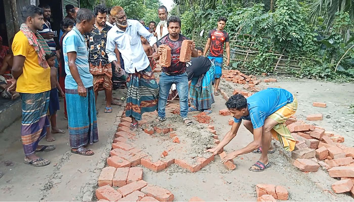 ন্থানীয়রা বলেন, এই রাস্তা দিয়ে মাঠের সব ফসল আমরা বাড়ি তুলি। ঘনবসতি হওয়ায় রাস্তায় চাপ খুব। বৃষ্টি হলে রাস্তা কাদায় ভরে যায়। বহু কষ্টের পর আমরা রাস্তা পাইছি। এখন নিম্নমানের ইটে কাজ করতে দেব না।