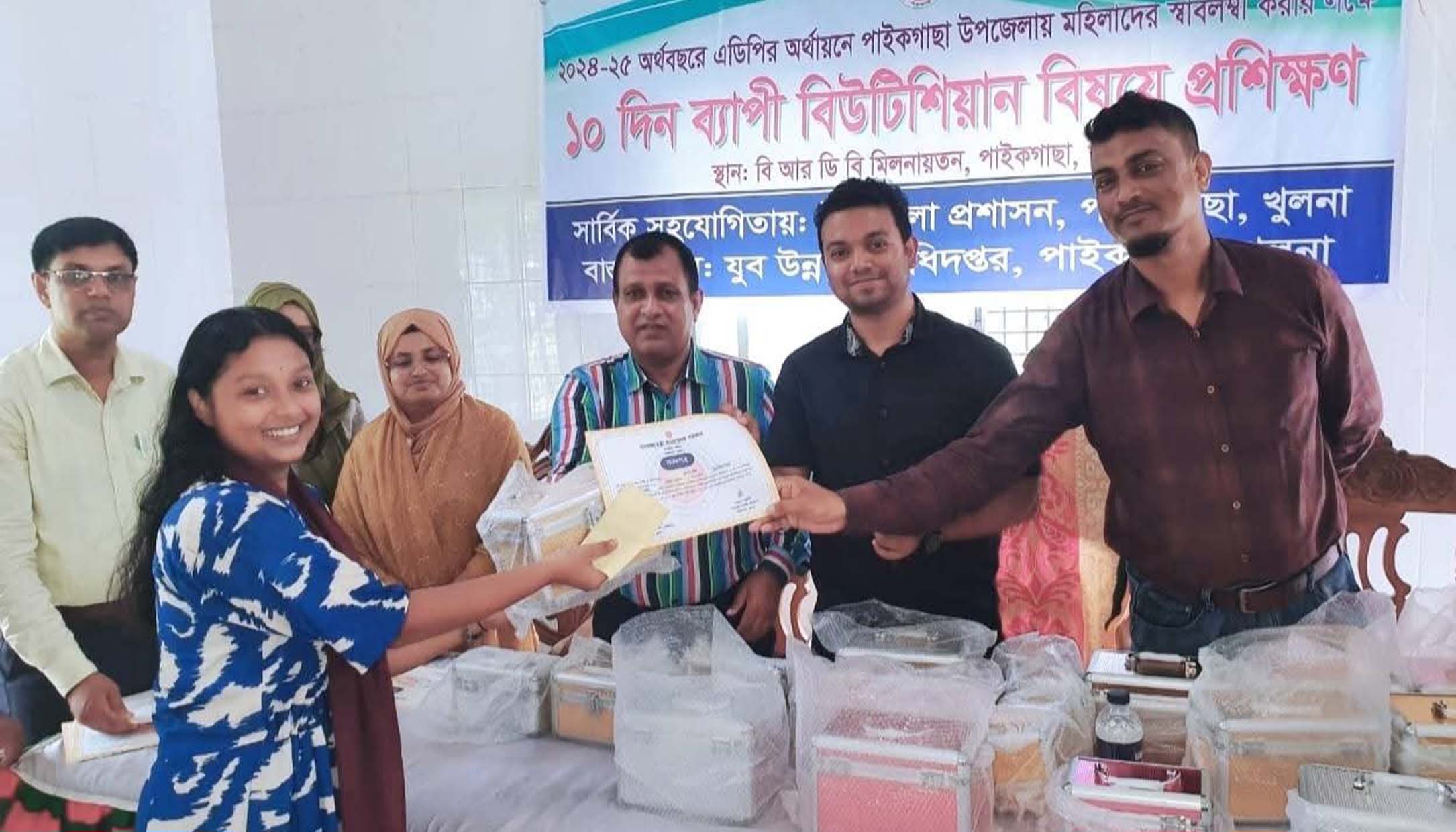 খুলনার পাইকগাছায় ১০ দিনব্যাপী বিউটিফিকেশন বিষয়ক প্রশিক্ষণের সমাপনী অনুষ্ঠানের মধ্য দিয়ে নতুন স্বপ্ন দেখছেন ২০ জন তরুণী ও নারী। উপজেলা যুব উন্নয়ন অধিদপ্তরের আয়োজনে ও উপজেলা প্রশাসনের তত্ত্বাবধানে অনুষ্ঠিত এ প্রশিক্ষণটি আত্মকর্মসংস্থানের লক্ষ্যে আয়োজন করা হয়।