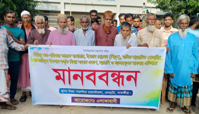 সাতক্ষীরার দেবহাটা উপজেলার উত্তর পারুলিয়া চারাবটতলা গ্রামে রাজনৈতিক প্রতিহিংসা ও উদ্দেশ্যপ্রণোদিতভাবে মিথ্যা তথ্য ছড়িয়ে স্থানীয় নেতাকর্মীদের হয়রানির প্রতিবাদে মানববন্ধন অনুষ্ঠিত হয়েছে।
