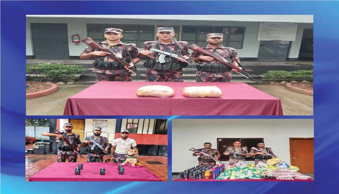 মঙ্গলবার (১৫ জুলাই) পৃথক পৃথক অভিযানে বিজিবি’র যশোর ব্যাটালিয়ন (৪৯ বিজিবি) এর টহলদল রঘুনাথপুর ও বেনাপোল বিওপি এবং বেনাপোল আইসিপির সীমান্ত এলাকায় মাদকদ্রব্য এবং চোরাচালান বিরোধী অভিযান পরিচালনা করে বিদেশী মদ, ভারতীয় গাঁজা, শাড়ী, কম্বল, স্পোর্টস বুট, বিভিন্ন প্রকার খাদ্য এবং কসমেটিক্স সামগ্রী আটক করে।