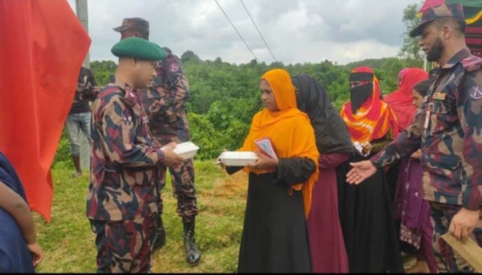 খাদ্য সহায়তা পাওয়া গৃহবধূ ছালেহা বেগম (৬৫) বলেন, “আমাদের এখানে আয়-রোজগারের তেমন সুযোগ নেই। আজকে যে চাল-ডাল-তেল দিল, সেটা দুই সপ্তাহ চলবে। বিজিবির জন্য দোয়া করি।”
