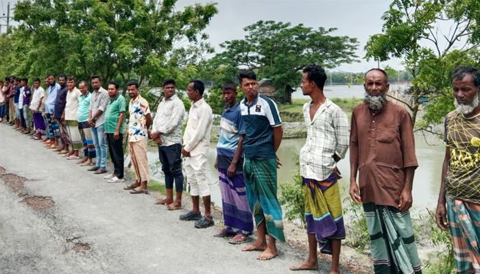আশাশুনিতে খাল খননে দুর্নীতি ও জলাবদ্ধতার প্রতিবাদে এলাকাবাসীর মানববন্ধন