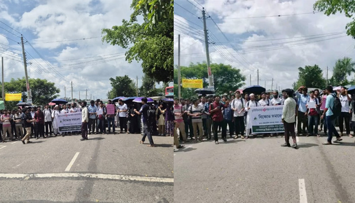 গোপালগঞ্জ বিজ্ঞান ও প্রযুক্তি বিশ্ববিদ্যালয়ে ডিপ্লোমাধারীদের ‘অযৌক্তিক’ দাবির বিরুদ্ধে এবং নিজেদের প্রস্তাবিত ৩ দফা দাবি বাস্তবায়নের লক্ষে বিক্ষোভ সমাবেশ ও এগ্রি ব্লকেড’ পালন করেছে কৃষি বিভাগের শিক্ষার্থীরা।