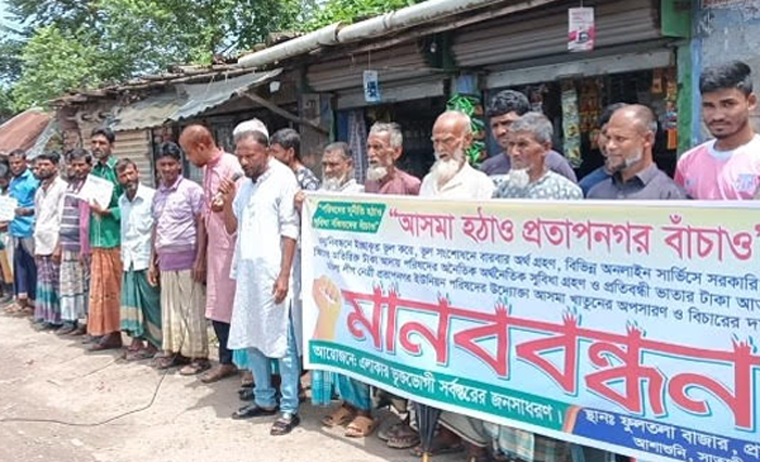 তা নাহলে পরবর্তী লাগাতার আন্দোলন ও কর্মসূচী গ্রহন করা হবে। বক্তাগন আরো বলেন, আসমা খাতুনের এত সব অপকর্ম ও দূর্নীতির আশ্রায় ও প্রশ্রায়দাতা প্রতাপনগর ইউপি চেয়ারম্যান আল.আবু দাউদ ঢালীও এসব কাজে জড়িত। তা নাহলে তিনি আ’লীগের দোসর মহিলালীগ নেত্রী আসমাকে অপসারন বা তার বিরুদ্ধে ব্যবস্থা গ্রহন না করে চুপচাপ প্রত্যেক অপকর্মকে ধামাচাপা দেওয়ার চেষ্টা করছেন কেন? বক্তাগন প্রশাসনের উর্দ্ধতন কর্তৃপক্ষের আশু হস্তক্ষেপ কামনা করছেন।