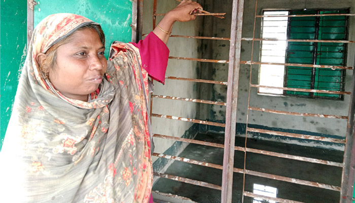 রেবেকা খাতুন অভিযোগ করে বলেন, সারা দিন অফিসে থাকার কারণে ঘর নির্মান কাজ দেখার সময় দিতে পারি না। সকালে অফিসে যাই সন্ধায় বাড়ি ফিরতে হয়। সেই সুযোগে নিন্ম মানের সামগ্রী দিয়ে ঘর নির্মান করছে। বাথরুমের দরজা খুলতে গেলেই পরে যাচ্ছে, রঙ্গিন টিন দেওয়ার কথ থাকলেন দিয়েছে নিন্মমানের টিন, জোরা তালির বাটাম,পাতলা পাতি দিয়ে জালানা তৈর করেছে। এখনি পাতির ঝালাই গুলো খুলে যাচ্ছে, ঘরের চাল দিলেও কোন টানা দেয়নি। যা ঝড় আসলেই ঘরের চাল উড়ে যাবে।