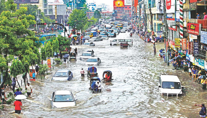 নগরবাসীর আক্ষেপ—ঢাকা উন্নত শহরের স্বপ্ন দেখালেও বাস্তবে সামান্য বৃষ্টিতেই ডুবে যায় এ নগর।