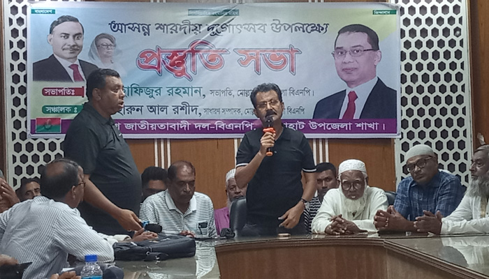 এসময় সভাপতি শেখ হাফিজুর রহমান বলেন,”হিন্দু সম্প্রদায়ের সবচেয়ে বড় ধর্মীয় উৎসব শারদীয় দুর্গাপূজা শান্তিপূর্ণভাবে সম্পন্ন করতে বিএনপি সর্বাত্মক সহযোগিতা করবে। পূজা মণ্ডপে নিরাপত্তা ও সহযোগিতায় আমরা সর্বদা পাশে থাকব।”