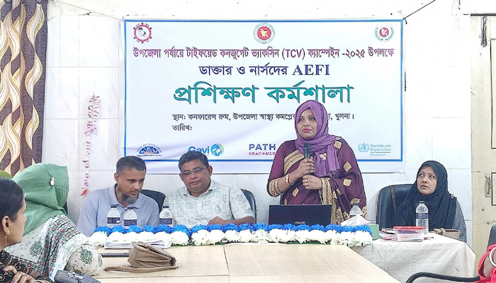 “টাইফয়েড জ্বর প্রতিরোধে, টিকা নেবো দল বেঁধে” এই প্রতিপাদ্যকে সামনে রেখে টাইফয়েড কনজুগেট ভ্যাকসিন (TCV) ক্যাম্পেইন-২০২৫ সফল করার লক্ষ্যে পাইকগাছায় ডাক্তার ও নার্সদের নিয়ে প্রশিক্ষণ ও AEFI (টিকা-পরবর্তী বিরূপ প্রতিক্রিয়া) বিষয়ক কর্মশালা অনুষ্ঠিত হয়েছে।