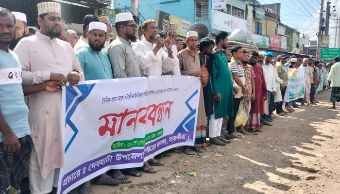 দৈনিক প্রথম আলো পদ দৈনিক ইনকিলাব পত্রিকায় প্রকাশিত সাতক্ষীরার উন্নয়ন বঞ্চনার অপপ্রচারের রিপোর্টের বিরুদ্ধে সাতক্ষীরার দেবহাটায় মানববন্ধন অনুষ্ঠিত হয়েছে।